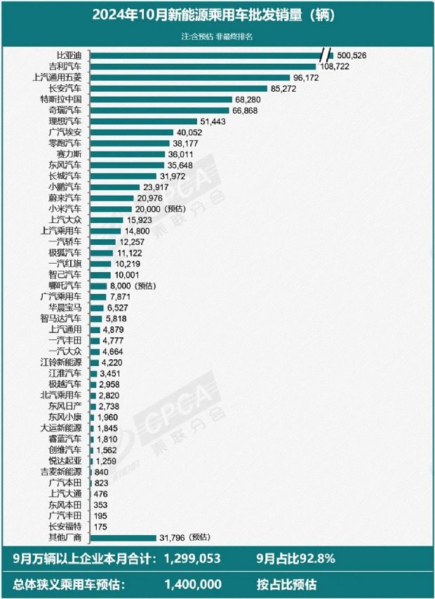 10月新能源乘用车销量大比拼,哪些品牌脱颖而出?数据揭晓!